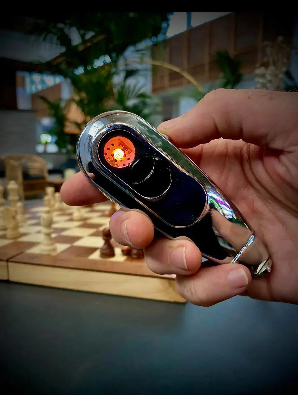 Elektra ships turned off. To turn on and use you need to remove poker packer tool from mouth piece and use the flat end to slot on bottom of Elektra shifting the OFF position to ON position. Elektra only ignites when the slide bowl cover is fully open and ON. Elektra has a built in timer of 10 seconds when slide bowl is fully open and button is pushed. This is a safety precaution in case it goes off in your pocket unintentionally.
